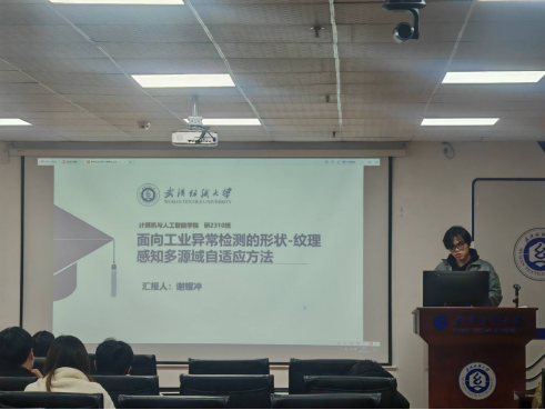 谢耀冲同学分享的主题为“Shape-Texture Aware Multi-Source Domain Adaptation for Industrial Anomaly Detection”。在工业异常检测中,检测表面纹理缺陷与形状形变是保障产品质量的关键。尤其在皮革制品异常检测中,工业数据集内丰富且相互耦合的纹理与形状特征,再加上异常样本极度稀缺,导致传统检测方法出现性能下降、泛化能力受限等问题。为应对这一挑战,本文提出一种多源域自适应异常检测网络MDANet。该网络基于域对抗学习框架构建,形成端到端的通用检测范式。针对工业缺陷检测任务的多样性,网络引入置信度掩码,以适配三类典型场景:仅形状特征检测、仅纹理特征检测,以及二者结合的检测。同时,采用最优传输机制实现动态权重分配,使模型能够敏感感知目标域数据中形状与纹理特征的占比,并灵活调整学习重心。此外,主干网络深度融合了多尺度特征融合模块(MFM)与全局注意力模块(GAM):前者通过高低分辨率特征的交互传播,增强模型对大面积缺陷与细微瑕疵的响应能力;后者在解码阶段对多级语义信息进行智能权重分配,显著提升特征表示精度。