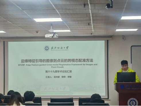 汤鸿睿同学分享的主题为“EFCRF: Edge Feature-guided Cross-modal Registration Framework for Images and Point Clouds”。图像与点云配准是自动驾驶与机器人感知融合的关键,但由于模态差异,现有方法在复杂场景下常面临特征不一致的难题。为此,本文提出了一种边缘特征引导的跨模态配准框架(EFCRF)。该框架首先通过定制的边缘提取模块,显式捕捉图像与点云的几何边界,融合生成具备结构感知的跨模态描述符;其次,采用由粗到精的配准策略,从全局的“超像素-超点”粗匹配,逐步细化至高精度的密集“像素-点”关联。此外,本文创新性地引入了边缘引导课程学习(EGCL)机制,依据场景边缘复杂度实现“由易到难”的训练调度,显著增强了模型的收敛稳定性。在KITTI与nuScenes数据集上的实验表明,该方法的配准准确率均突破99%,各项误差指标全面优于现有最优方法,充分验证了边缘结构建模在复杂跨模态配准中的卓越鲁棒性。