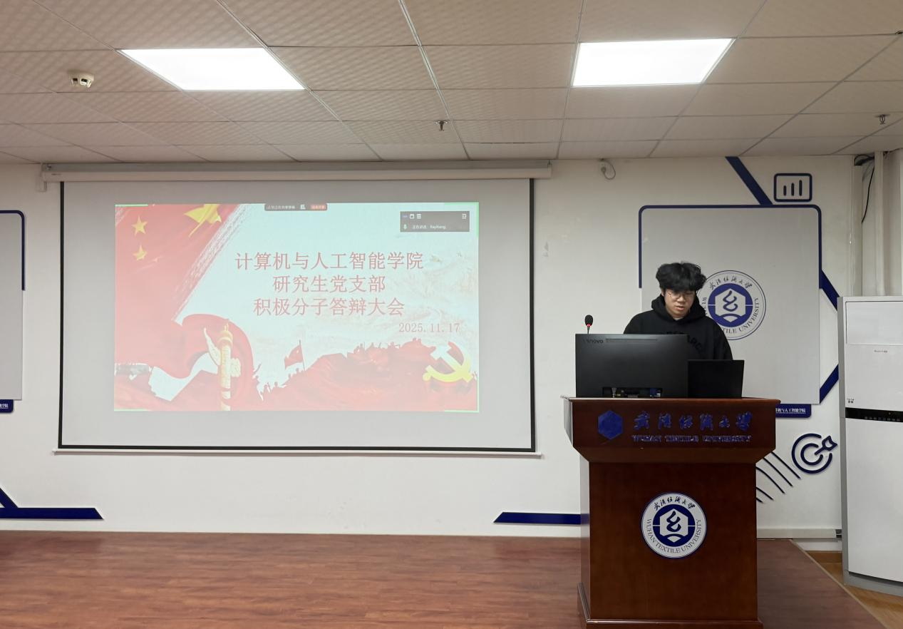 近日,计算机与人工智能学院在崇真南楼 A4030 会议室召开研究生入党积极分子推优答辩会。学院研究生党支部全体党员和入党积极分子参会。