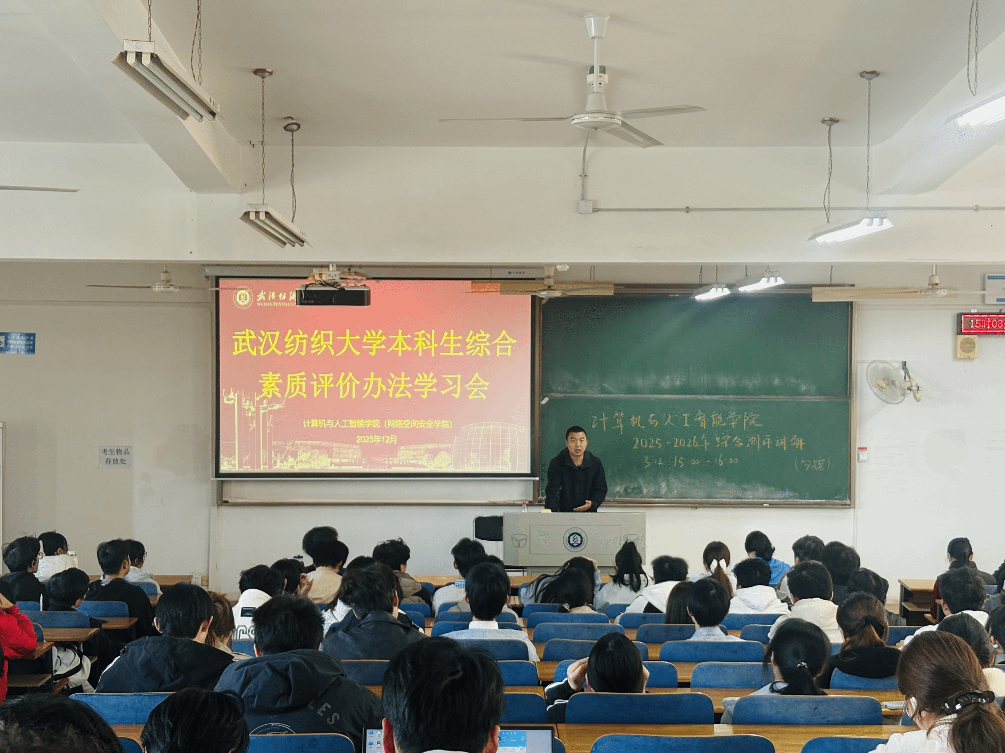 为进一步规范本科生综合素质评价工作,引导学生全面发展、精准规划学业成长,3月12日,计算机与人工智能学院(网络空间安全学院)召开本科生综合素质评价办法专题讲解会议。学院2024级、2025级全体班委参会,会议由25级辅导员汤若釴、24级辅导员李港共同主持,聚焦《武汉纺织大学本科生综合素质评价办法(试行)》开展深度解读与答疑。