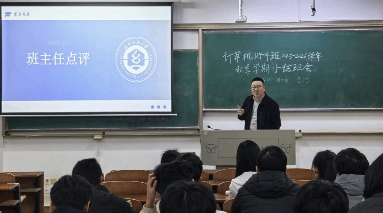 为全面复盘大二上学期学业成长成果,深挖学习发展短板,凝练班级建设经验,明确后续提升路径,3月15日,计算机 12404 班在3教110教室召开大二上学期总结班会,班主任余锋、辅导员李港与全班同学齐聚一堂,共话成长、共谋发展。本次会议由班长毛超强主持,以班长总结班级整体情况、各寝室汇报建设成果、班主任点评指引发展方向为核心环节,凝聚班级奋进合力,为新学期学业发展与班级建设奠定坚实基础。