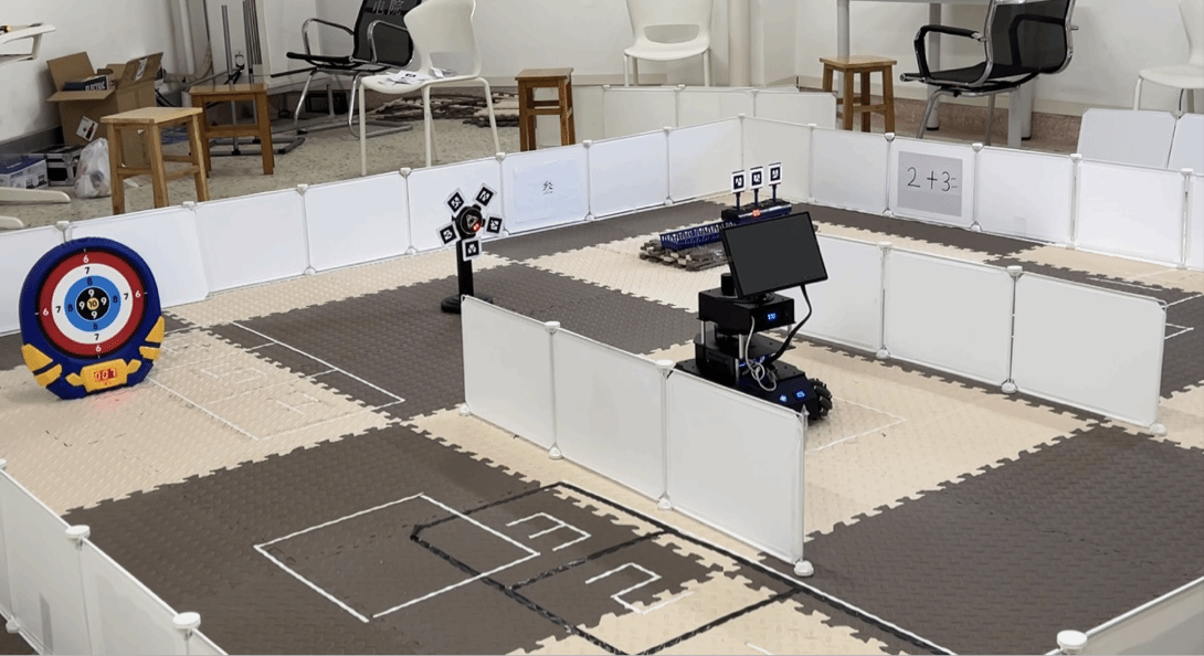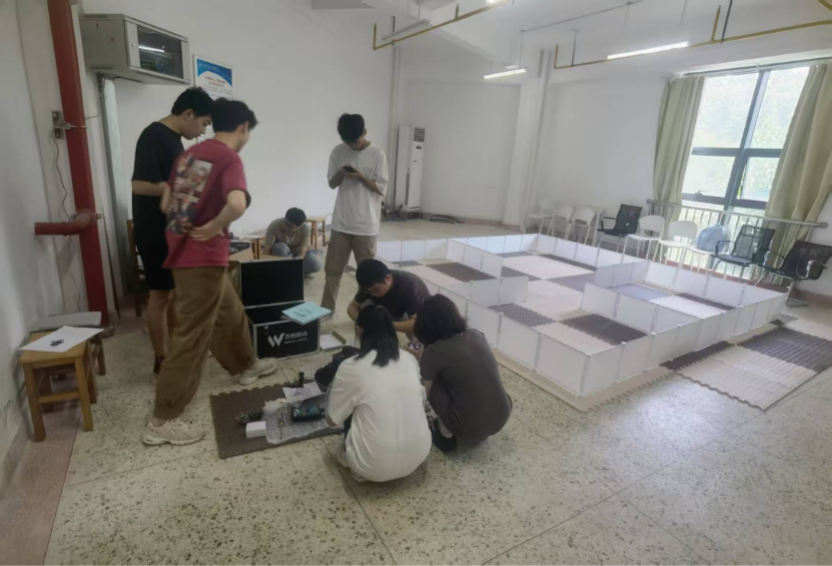 计算机与人工智能学院自2025年5月起组织学生开展集中训练,积极备战。备赛期间,同学们从零起步,通过视频学习、自主研讨与教师指导相结合的方式,充分利用课余时间,反复调试设备、优化程序、演练策略。在潘雄、阮晓莉、李帆、金丽宏等老师的悉心指导下,团队攻克了多项技术难题,在图像识别、自主定位、路径规划等核心算法方面取得显著突破。