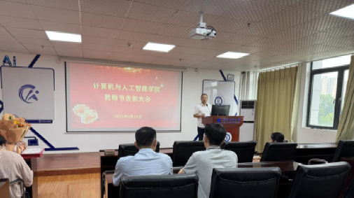 9月10日,在第41个教师节到来之际,计算机与人工智能学院于崇真楼(南楼)A4030会议室举办教师节表彰大会。大会氛围庄重而温馨,学院党委书记晏伟主持会议,全体教职工齐聚一堂,共同见证荣誉时刻,弘扬尊师重教的优良传统,凝聚学院发展的奋进力量。