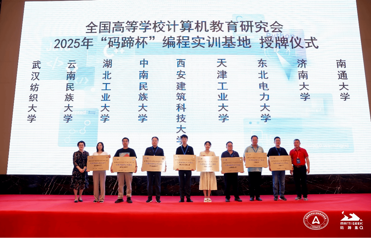 “码蹄杯”大赛由全国高等学校计算机教育研究会主办,联合百度公司、清华大学出版社、研究会职业教育分会及DCAC共同承办,旨在以算法设计为核心,激发大学生的编程热情,提升专业实践能力,推动“以赛促教、赛教融合”的人才培养模式。凭借在赛事组织与人才培养方面的突出表现,武汉纺织大学被授予“2025年‘码蹄杯’编程实训基地”称号。