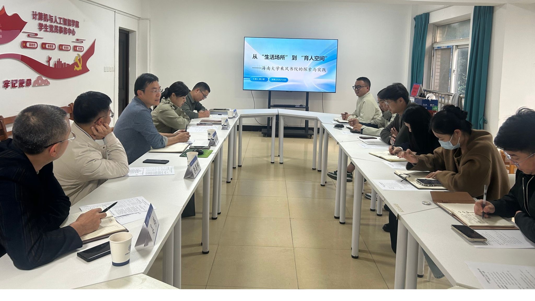 最后,晏伟作总结发言。他首先对海南大学同仁的无私分享表示衷心感谢,并对学生工作提出明确要求:一是要坚守安全稳定底线,同时注重辅导员能力的成长,实现工作与发展、稳定与特色的平衡;二是要立足学院学科特色,将专业元素深度融入“一站式”社区建设,打造具有计算机与人工智能领域特点的育人空间;三是要始终围绕学生成长成才核心目标,优化培养路径,提升育人实效。