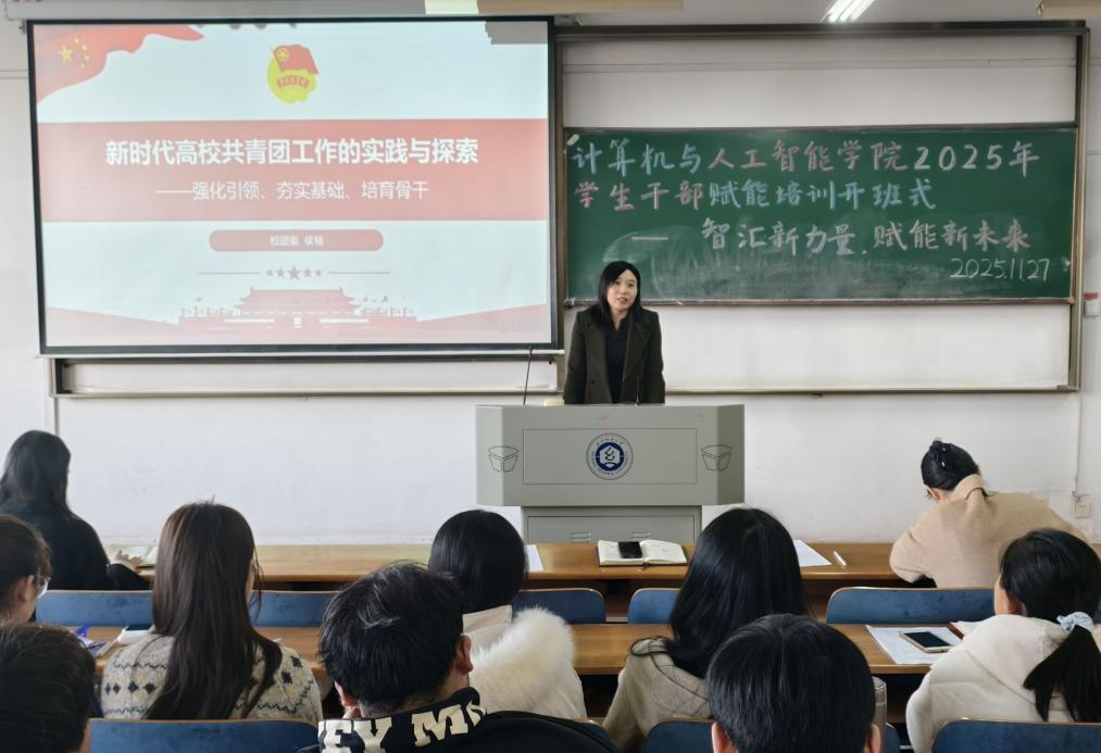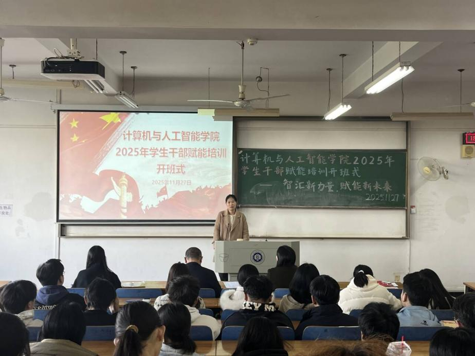 为切实加强学院学生干部队伍建设,提升学生骨干的综合素质与履职能力,11月27日下午,计算机与人工智能学院在崇志楼03-218教室举行2025年学生干部赋能培训开班式。校团委副书记侯畅、学院党委书记晏伟出席活动。院团委书记喻仪、院团委指导老师易凡、研究生辅导员余梦帆,以及研究生会、第五届团委学生会全体成员、2024级与2025级全体班委参加。活动由喻仪主持。