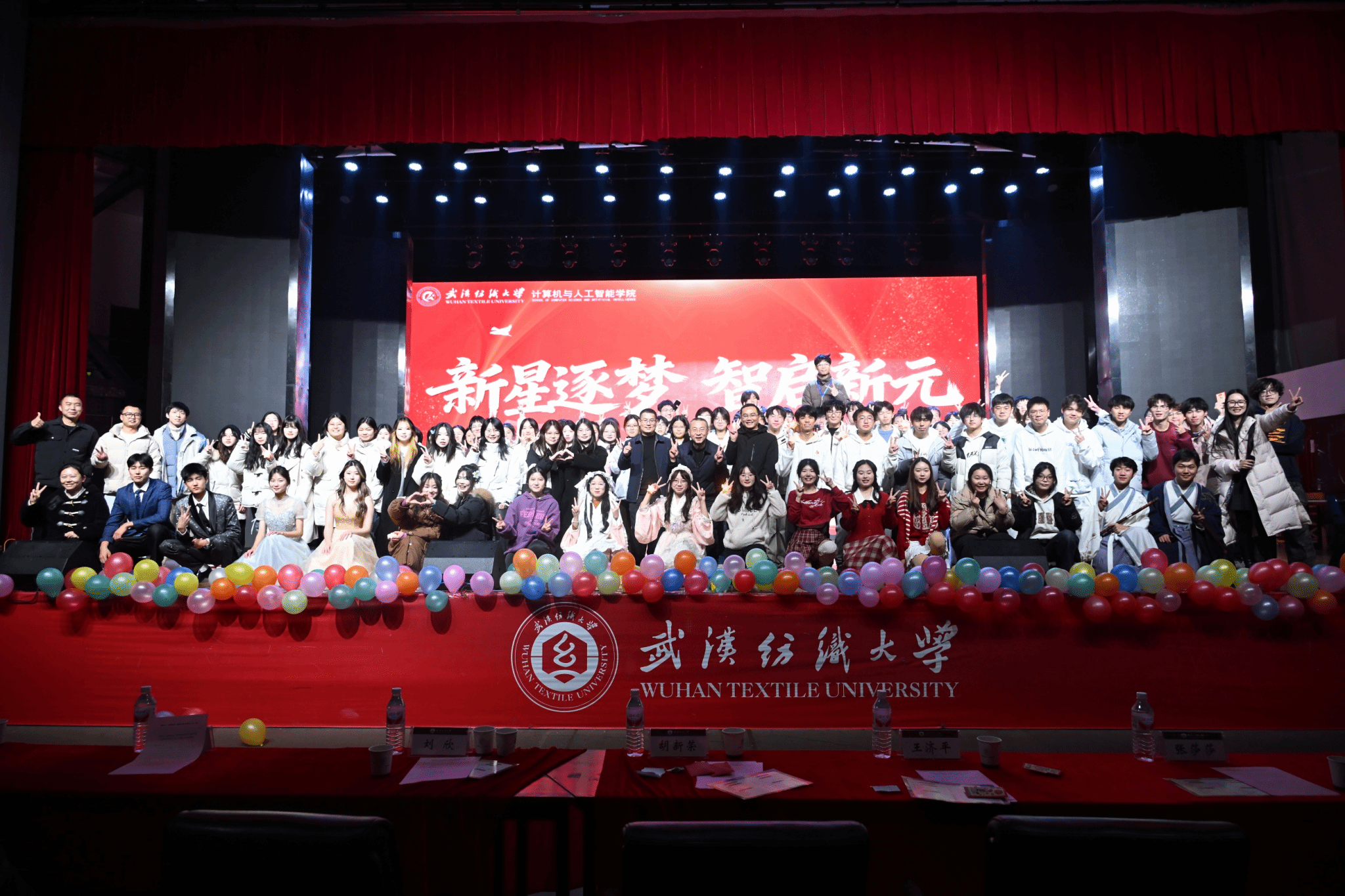 表彰大会落下帷幕后,以“新星逐梦·智启新元”为主题的新年晚会,在杨冠宇、彭佳豪、韩萱怡、杨欣怡四位学生主持人的巧妙串联下正式启幕。晚会精心设置“星火·初燃”“征途·共赴”“破晓·智现”“星河·同辉”四个篇章,穿插趣味互动抽奖环节,歌舞、小品、器乐、朗诵等各类节目轮番登台,全方位展现了计智学子的青春风采与多元才华。