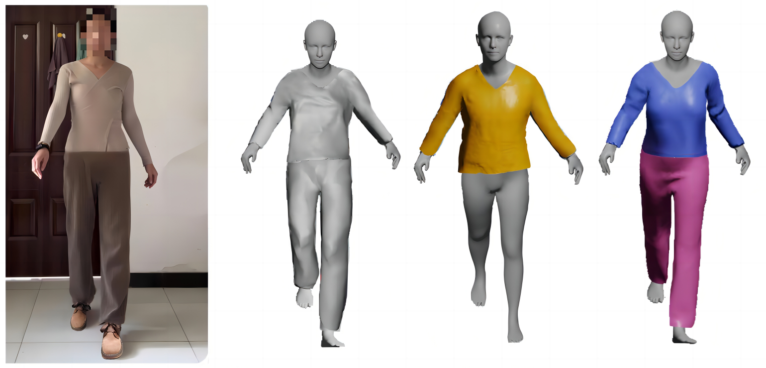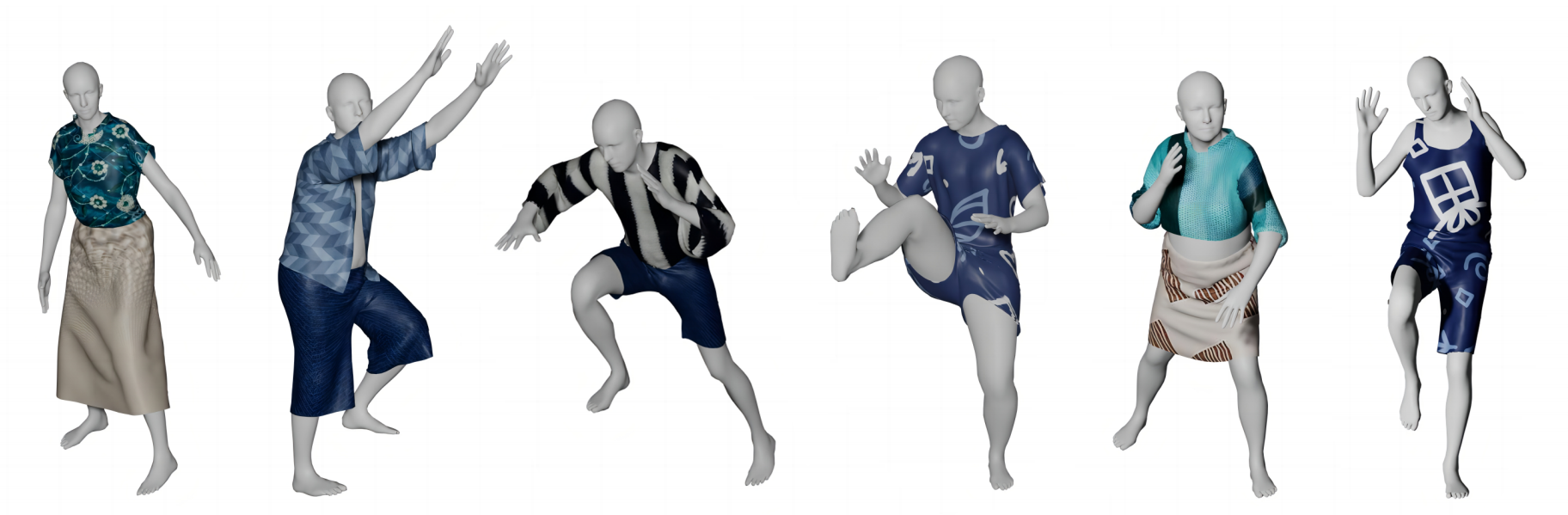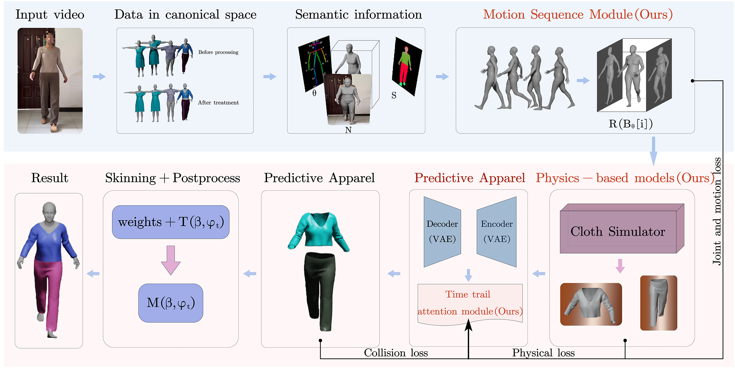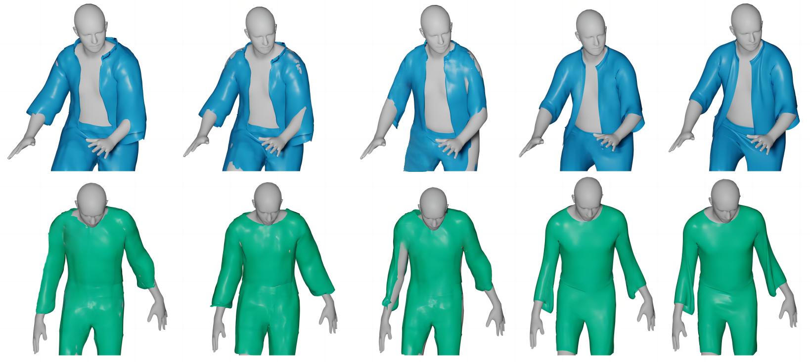 After processing with our method, the input real video can not only generate smooth video, but can also enhance the clothing in the original video and show a smoother clothing swing effect.
